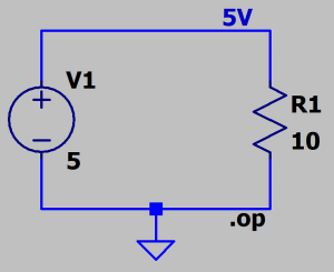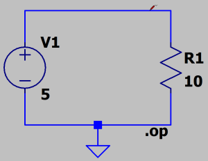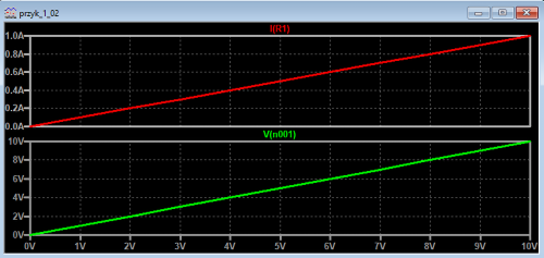 Sprawdźmy jeszcze, czy SPICE się nie pomylił. Na rezystorze 10 Ohm panuje napięcie 5 V, więc zgodnie z prawem Ohma przez ten element płynie prąd o natężeniu 0,5 A. Na szczęście, to dokładnie tyle samo, ile obliczył program. Może to w tym wypadku brzmi zabawnie, ale mówi się, że nie powinno się używać SPICE-a jeśli projektant kompletnie nie wie, czego ma się spodziewać jako wyniku. Jest to uzasadnione, ponieważ źle dobrane parametry analizy i dokładności obliczeń mogą skutkować błędnymi rezultatami. Na szczęście, nie dotyczy to aż tak prostego przykładu.