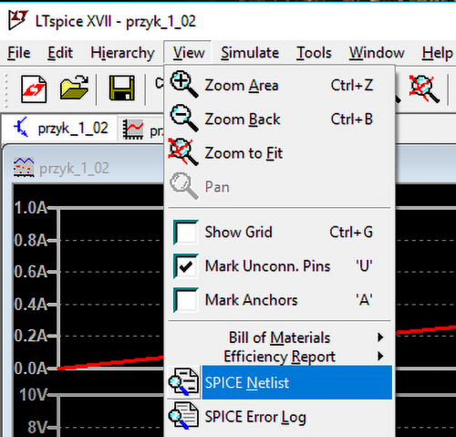 Netlista ma rozszerzenie net, dla naszego przykładu jest to przyk_1_02.net. Często spotykane są także inne rozszerzenia netlist np.: cir, sp, in.