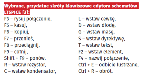 Przydatne skróty klawiszowe edytora schematów wymieniono w ramce.