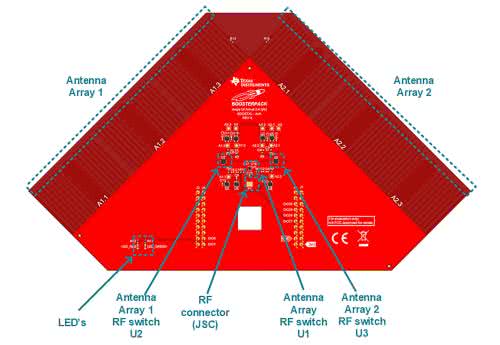 Płytka zestawu BOOSTXL-AoA zawiera dwie ortogonalne matryce anten, każda po trzy dipole. Anteny są rozsunięte na odległość trochę większą niż ¼ długości fali. Każda antena pokrywa teoretycznie obszar o kącie ±90°. Gdy matryce są używane razem, to pokrywają kąt ±135° (gdzie pokrycie zachodzi na siebie dla 45° po każdej stronie). Każdy dipol matrycy jest poprzez balun dołączony do potrójnego przełącznika, a następnie podwójny przełącznik jest dołączony do gniazdka antenowego procesora komunikacyjnego CC2640R2.