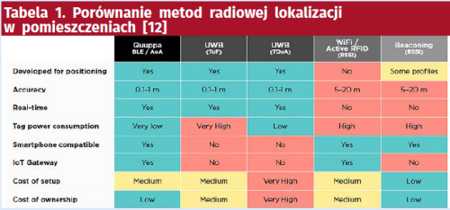 Wszytko to oferuje Quuppa Intelligent Locating System [12]. Opracowany po ponad 15 latach unikalny algorytm pozycjonowania sprawdza się w wielu rozwiązaniach przemysłowych. Firma oferuje zaawansowane lokalizatory i znaczniki (tagi) oraz wiele pakietów programowych. System można zintegrować z dowolną istniejącą infrastrukturą komunikacyjną. System zapewnia dokładność lokalizacji do 10 cm z opóźnieniem do 100 ms [12].