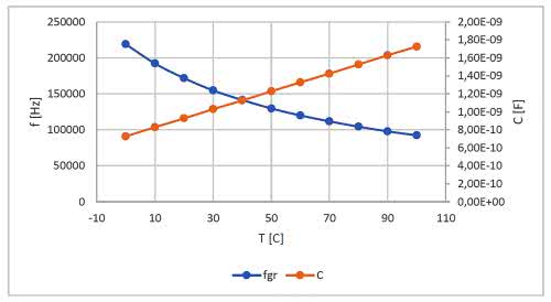 Dla potwierdzenia, że współczynnik TC wprowadza liniową zależność pojemności od temperatury, otrzymane wyniki zilustrowano na rysunku 4.