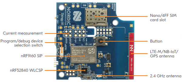 Zestaw Thingy:91 ma bardzo „elegancką” konstrukcję elektroniczną. Umożliwia komunikację na wiele sposobów: LTE-M/NB-IoT, GPS, BLE/ Bluetooth mesh/Thread/Zigbee/IEEE 802.15.4/ ANT, NFC oraz USB/UART. Udostępnia bardzo nowoczesne scalone układy czujnikowe, szczególnie układ pomiaru jakości powietrza. Układ scalony zarządzania zasilaniem (ADP536x firmy Analog Devices) jest tak nowy, że nie jest jeszcze dostępny jego opis. Jednak to są dopiero pierwsze tygodnie po wprowadzeniu zestawu Thingy:91 na rynek. I podobnie jak w przypadku poprzedniego zestawu IoT tej firmy wsparcie użytkowe i programowe ułatwi życie programistom.
