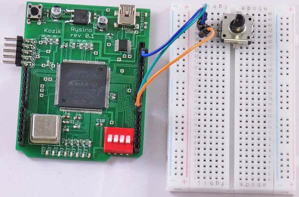 Po zbudowaniu projektu możemy zaprogramować układ FPGA i przetestować jego działanie. Gdy obrócimy gałkę enkodera stan diod LED powinien ulec zmianie.