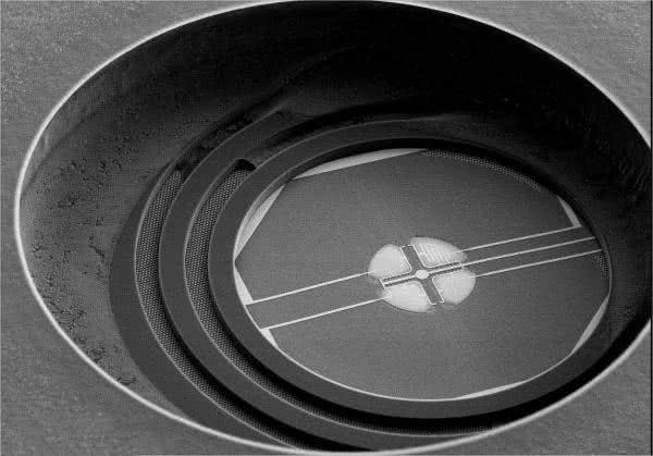 Mikropłytka z kontrolowaną temperaturą zapewnia stabilną pracę czterech pojedynczych pikseli czujnikowych.