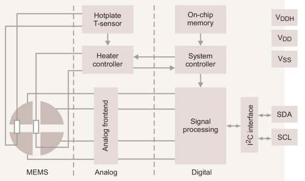 Układy CMOSens to inteligentne systemy mikrosensorowe o wysokim stopniu integracji i funkcjonalności. Zapewnia to analogowe i cyfrowe przetwarzanie sygnału, które jest zintegrowane w układzie półprzewodnikowym wraz z komponentem czujnika. Układy scalone zapewniają autotesty, pracę przy niskiej mocy oraz wbudowaną linearyzację, cyfryzację, kompensację temperatury oraz pamięć do przechowywania danych kalibracyjnych. Obecny wysoki poziom funkcjonalności i inteligencji wynika z wieloletnich prac rozwojowych.