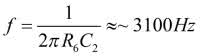 Rezystory R3 i R4 tworzą dzielnik napięcia ustalający „sztuczną masę” dla naszego przedwzmacniacza. Kondensator C1 usuwa składową stałą z wejścia wzmacniacza operacyjnego. Zmieniając wartość R5, możemy regulować wzmocnienie. Na wyjściu znajduje się prosty filtr RC złożony z R6 i C2. Jego częstotliwość graniczna to: