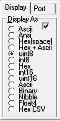 Kiedy mamy już gotowy kod, możemy otworzyć w środowisku Quartus projekt 10_record/10_rec.qpf i rozpocząć jego budowę. Po wgraniu bitstreamu do układu FPGA przechodzimy do odczytywania danych. W tym celu można wykorzystać znany nam już program RealTerm. Aby wyświetlane dane były bardziej czytelne, możemy w zakładce Display wybrać opcję uint8 (unsigned int 8 – 8-bitowa liczba całkowita bez znaku), co pokazuje rysunek 6.