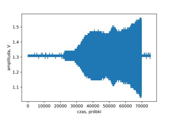 W repozytorium znajduje się także plik mp3 11_dc_r\parse\chirp_0_5.mp3, zawierający stworzony przebieg.
