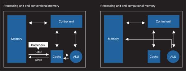 Przemysł półprzewodników przez długi czas osobno projektował i konfigurował pamięć oraz procesor. Tak zwany procesor w pamięci (PIM, Processor In Memory), procesor w pobliżu pamięci (PNM, Processor Near Memory), albo obliczenia w pamięci (IMC, In-Memory Compute), znajduje się na chipie. Najpierw projektowany jest obwód pamięci przechowującej tablicę, a następnie obwód wykonawczy – dodawany, aby uczynić obwody przechowywania i obliczeń niemal zintegrowanymi (rysunek 1).