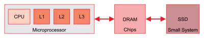 Obecnie najpopularniejsze architektury komputerowe zbudowane są na założeniach, dotyczących dostępu do pamięci i jej wykorzystania. Systemy te zakładają, że pełna przestrzeń pamięci jest zbyt duża, aby zmieścić się w chipie w pobliżu procesora i że nie wiemy, jaka pamięć będzie potrzebna w jakim czasie. Aby rozwiązać problem przestrzeni i niepewność, architektury te tworzą hierarchię pamięci. Pamięć w pobliżu procesora jest mała i szybka, dlatego może obsługiwać wysoką częstotliwość użytkowania, podczas gdy DRAM i SSD są wystarczająco duże, aby przechowywać większe, mniej wrażliwe czasowo dane (rysunek 3).