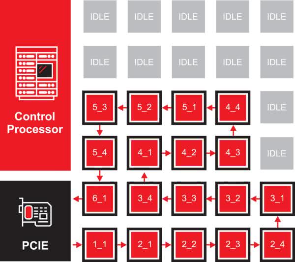 Wnioskowanie AI nie jest typową aplikacją sekwencyjną. Jest to aplikacja oparta na grafach, w której wyjście z jednego węzła grafu, przepływa do wejścia innych węzłów grafu. Aplikacje z użyciem grafów zapewniają możliwości wyodrębnienia równoległości poprzez przypisanie innego elementu obliczeniowego do każdego węzła wykresu. Kiedy wyniki z jednego węzła wykresu są gotowe, przechodzą do następnego węzła wykresu, aby rozpocząć następną operację, co jest idealne dla architektury przepływu danych. W architekturze przepływu danych, przypisujemy węzeł wykresu do każdej tablicy obliczeniowej w pamięci i umieszczamy dane wagi dla tego węzła wykresu, w tej tablicy pamięci. Kiedy dane wejściowe dla tego węzła wykresu są gotowe, przesyłane są następnie do właściwej lokalizacji, sąsiadującej z tablicą pamięci, a następnie wykonują je lokalne obliczenia i pamięć. Wiele aplikacji do wnioskowania wykorzystuje operacje takie jak splot, która przetwarza bity ramki obrazu naraz, zamiast całej ramki na raz.