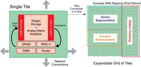 MMA zapewnia przewagę wydajności, dzięki zastosowaniu przetwarzania analogowego, w połączeniu z wbudowaną pamięcią Flash – każda z nich zapewnia ogromną wydajność, około 250 miliardów operacji wielokrotnej akumulacji na sekundę, przy bardzo niskim koszcie energii. Jednostka SIMD zapewnia operacje cyfrowe, których MMA nie może wykonać, takie jak MaxPool lub AvgPool. SRAM przechowuje kod programu i bufory danych. RISC-V zarządza płytką.