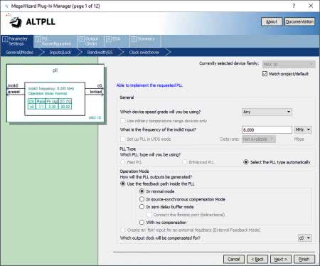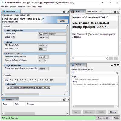 Aby skorzystać z modułu ADC i PLL, musimy wygenerować odpowiednie bloki IP w pakiecie Quartus. Proces ten został pokazany krok po kroku na filmie instruktażowym [4]. Artykuł opisuje jedynie wybrane momenty.