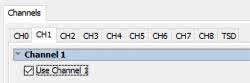 Ostatnim krokiem jest wybór kanałów w panelu Channels. Najpierw odznaczamy domyślnie włączony kanał CH0. Następnie z zakładek wybieramy CH1 i zaznaczamy „ptaszkiem” jego wybór, co pokazano na rysunku 7. To samo wykonujemy dla kanału CH2, ponieważ użyjemy go w projekcie.