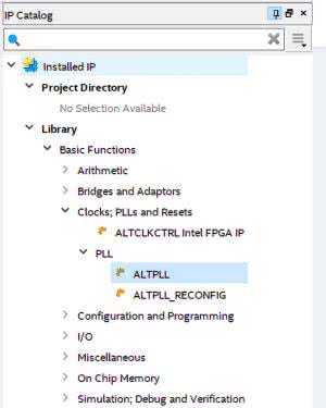 Kiedy znamy już wymaganą częstotliwość zegara, przechodzimy do konfiguracji pętli PLL. Znowu korzystamy z panelu IP Catalog. Tym razem, co ilustruje rysunek 10, wybieramy Library → Basic Functions → Clocks; PLLs and Resets → PLL → ALTPLL.