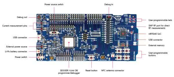 Oprogramowanie układu scalonego nRF5340 jest wspierane przez pakiet programowy nRF Connect SDK. Zestaw uruchomieniowy nRF5340 PDK (Preview Development Kit) firmy Nordic Semiconductor to wszechstronny zestaw do pracy z układem scalonym nRF5340 tej firmy. Posiada wbudowany debuger SEGGER J-Link umożliwiający programowanie i debugowanie zarówno zamontowanego układu SoC, jak i zewnętrznych układów SoC poprzez złącze debugowania. Posiada łącza rozszerzeń kompatybilne z Arduino Uno Revision 3, dzięki czemu można z łatwością montować płytki rozszerzeń (shields). Zestaw pracuje z dużą liczbą środowisk programowych i aplikacji narzędziowych.