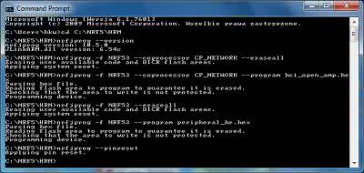- Wpisz polecenie: nrfjprog -f NRF53 --program peripheral_hr.hex