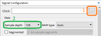 Teraz przechodzimy do konfiguracji modułu, którą wykonamy w panelu Signal Configuration (po prawej stronie okna), pokazanego na rysunku 6. Zaczynamy od wyboru zegara. W linii Clock naciskamy przycisk (1).