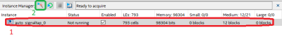 Narzędzie włączamy wybierając opcję Signal Tap Logic Analyzer (rysunek 1), z menu Tools. Pojawi się główne okno programu, podobne do tego z rysunku 2. Można w nim wydzielić kilka grup opcji. Na samej górze znajduje się menu programu. Pasek oznaczony jako (1), pozwala na uruchomienie zbierania danych oraz prezentuje aktualny stan systemu. W tej chwili jego kolor jest żółty, co oznacza, że nie jest gotowy do pracy. Kolor czerwony sygnalizuje, że wprowadziliśmy duże zmiany, które wymagają powtórnego zbudowania projektu.