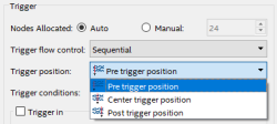 W panelu Signal Configuration mamy możliwość dokonania bardziej zaawansowanej konfiguracji wyzwalania, gdzie między innymi możemy wybrać, czy chcemy aby moment wyzwolenia był na początku, w środku, czy na końcu danych (rysunek 19). Mamy taką możliwość, ponieważ dane ciągle zbierane są w buforze cyklicznym, natomiast sam trigger decyduje tylko o momencie, kiedy zapis zostanie zatrzymany.