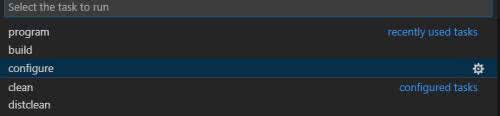 Aby skompilować oraz zaprogramować mikrokontroler bezpośrednio z poziomu IDE, należy wskazać sposób budowania oraz zestaw dodatkowych komend wykonywanych z poziomu IDE. W tym celu ponownie wybieramy kombinację klawiszy CTRL+P, a następnie wyszukujemy i wybieramy opcję: Tasks:Configure, co powinno spowodować wyświetlenie pliku tasks.json. W naszym przypadku plik ten powinien wyglądać jak na listingu 2. Plik ten opisuje komendy, jakie mogą być wykonywane bezpośrednio z poziomu edytora VSCode. Występują tutaj bezpośrednie odwołania komend do systemu budowania waf. Jak już wcześniej wspomniano, zbudowanie przykładu z wykorzystaniem systemu waf składa się z następujących kroków: