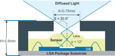 Układy są umieszczone w obudowach LGA (4,5×4,4×2,5 mm) z przesłoną ograniczającą wpływ światła rozproszonego oraz mikrosoczewką (rysunek 7). Charakterystyka optyczna jest zoptymalizowana do pomiarów światła rozproszonego.