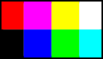 Musimy jeszcze przygotować wsad dla pamięci. Posłużymy się tu programem MS Paint. Przykładowy obrazek znajdziemy w pliku 15_VGA/test.bmp (rysunek 16). Ma on rozmiary 80×60 pikseli. Przygotowując własną grafikę musimy zwrócić uwagę, aby używać tylko ośmiu kolorów z naszej listy.