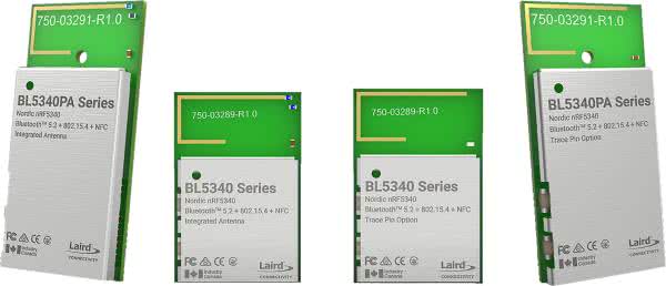 Najnowsza seria modułów BL5340 firmy Laird Connectivity (w opracowaniu) wyposażona w układ scalony nRF5340 firmy Nordic Semiconductor jest ukierunkowana na najwyższą wydajność przy najniższym budżecie mocy [13]. Moduł BL5340 charakteryzuje się bardzo dobrymi parametrami poboru mocy: 5,3 mA (+3 dBm TX), 4,1 mA (0 dBm TX), 1,3 µA (system włączony) oraz 0,9 µA (system wyłączony).