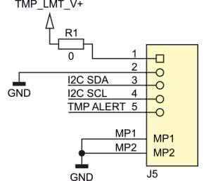Układy scalone czujników są dołączone do tej samej szyny I2C. Identyfikacja następuje poprzez ustawienie (skonfigurowanie) różnych adresów na szynie I2C: OPT3001 0×44, TMP117 0×48, HDC2080 0×40, BME150 0×13, BME160 0×69. Układy udostępniają też wyprowadzenia sygnału przerwania.