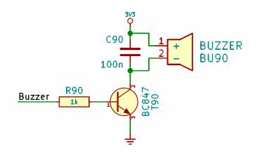 W roli głośnika wykorzystamy prosty i niedrogi brzęczyk. Na płytce User Interface Board, współpracującej z MachXO2 Mega, zastosowano układ, którego schemat widzimy na rysunku 2. Pin Buzzer został połączony z linią 28 układu FPGA. Stan wysoki sygnału Buzzer powoduje otwarcie się tranzystora T90, w związku z czym przez niego (a więc i przez cewkę głośnika) płynie prąd. Otwarcie i zamknięcie tranzystora powoduje „pyknięcie” głośnika. Kiedy „pyknięcia” zdarzają się z odpowiednio dużą częstotliwością, nasze uszy odbierają je jako dźwięk – strasznie piszczący i niezbyt przyjemny, ale jakość dźwięku nie jest priorytetem w kursie FPGA.