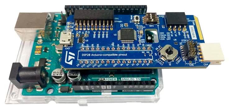 Niniejszy kurs oparty został na procesorze z najnowszej serii STM32C0, dumnie promowanej przez firmę ST Microelectronics jako produkt, mający na celu zastąpienie (żeby nie powiedzieć – wyparcie z rynku) mikrokontrolerów 8-bitowych. I tutaj ciekawa dygresja – kilkanaście lat temu, gdy pierwsze układy STM32F1 dopiero rozkręcały się na rynku MCU, niemal równolegle z nimi marka ST promowała także własną rodzinę 8-bitowców – STM8S. Nie da się ukryć, że grupa ta nie zrobiła szczególnej furory w świecie systemów embedded, a dziś jej status handlowy to NRND (nierekomendowane do nowych projektów). W międzyczasie ST solidnie zainwestował w rozwój procesorów STM32, stając się jednym z potentatów na tym obszarze. Strategiczne posunięcie, jakim było opracowanie serii lekkich, niewielkich procesorów ARM w niewiarygodnie wręcz niskim przedziale cenowym (najtańsze układy mają kosztować przy zamówieniach hurtowych tylko 24 centy!), wydaje się więc strzałem w dziesiątkę. Firma ST Microelectronics nie kryje się zresztą za bardzo z chęcią wyparcia z rynku kultowych już mikrokontrolerów ATmega328 (stanowiących fundament ekosystemu Arduino), o czym świadczy oficjalny moduł, przeznaczony do… wpinania do podstawki DIL28 w miejsce oryginalnego procesora na Arduino Uno (fotografia 1).