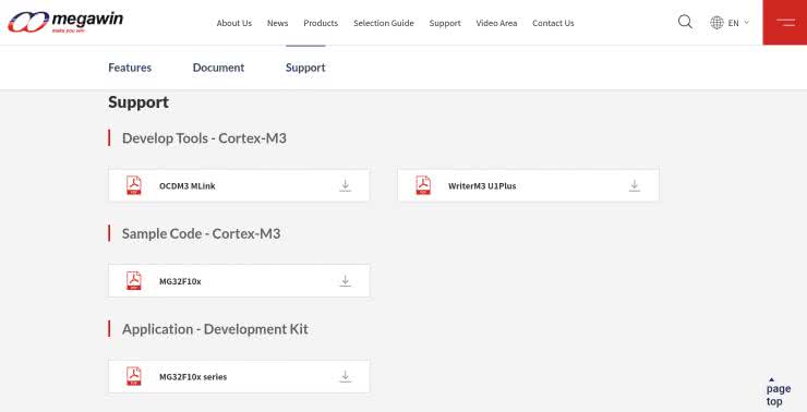 Aby pobrać dodatkowe sterowniki, przechodzimy na stronę: https://www.megawin.com.tw/product/MG32F103RBT6#Support i w zakładce Support klikamy link zatytuowany OCDM3 MLink (rysunek 5).