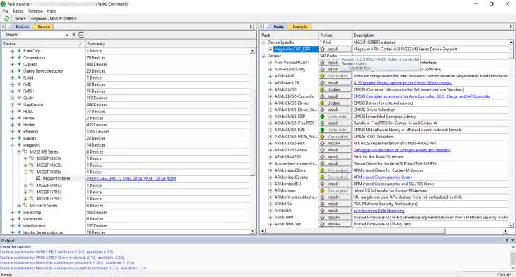 Po uruchomieniu pozyskanego w opisany sposób pliku wykonywalnego, w oknie Pack Installer (rysunek 3) możemy wybrać interesujący nas procesor z listy znajdującej się po lewej stronie ekranu, a następnie zainstalować odpowiedni pakiet, klikając przycisk Install, znajdujący się tuż obok sekcji Device Specific → Megawin:CM3_DFP. Etap ten nie jest jednak konieczny – za chwilę bowiem i tak doinstalujemy najnowszą wersję bibliotek za pomocą specjalnego programu dostarczanego przez producenta.