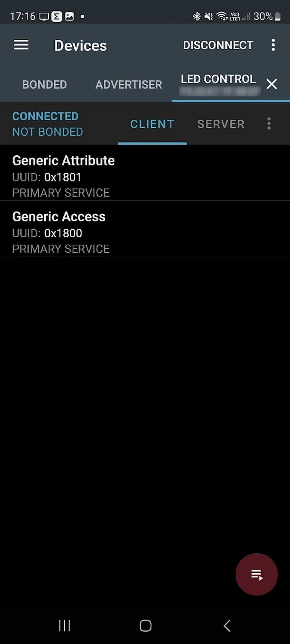 Po kliknięciu w CONNECT powinniśmy zobaczyć serwisy udostępniane przez nasze urządzenie. Będą to tylko podstawowe dane, potrzebne np. do pobrania nazwy naszego urządzenia (rysunek 3).