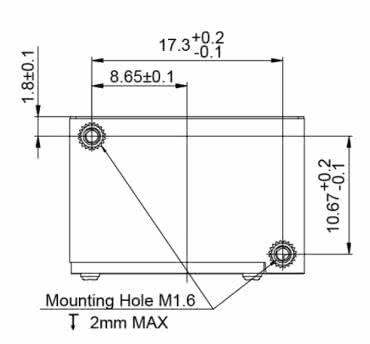 Skaner jest mocowany do konstrukcji docelowego urządzenia za pomocą dwóch śrubek z gwintem M1,6, rozmieszczonych po przekątnej spodu obudowy (rysunek 2).