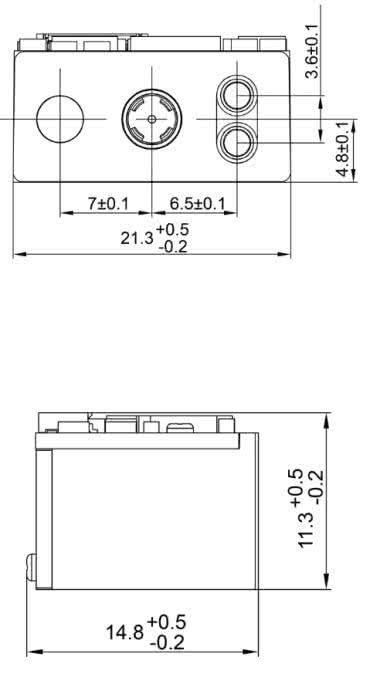 Wymiary modułu EM3296V4 to zaledwie 21,8 mm × 15,3 mm × 11,8 mm (szerokość × głębokość × wysokość) – patrz rysunek 1.