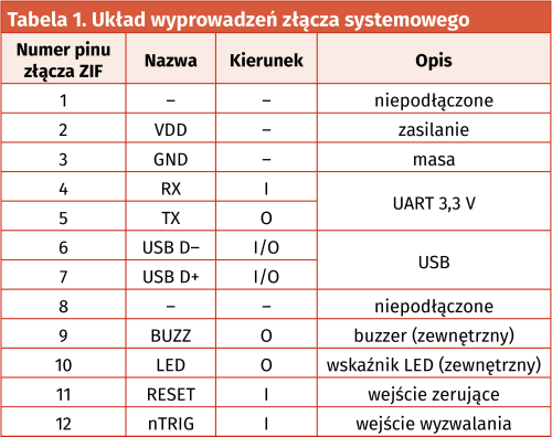 Wszystkie połączenia modułu z układem nadrzędnym (np. mikrokontrolerem lub komputerem SBC) są realizowane za pośrednictwem 12-żyłowego przewodu FPC o rastrze 0,5 mm (rysunek 5) – producent zastosował gniazdo 10051922-1210EHLF marki FCI, ale nic nie stoi na przeszkodzie, by po stronie hosta umieścić kompatybilne złącze innego producenta.