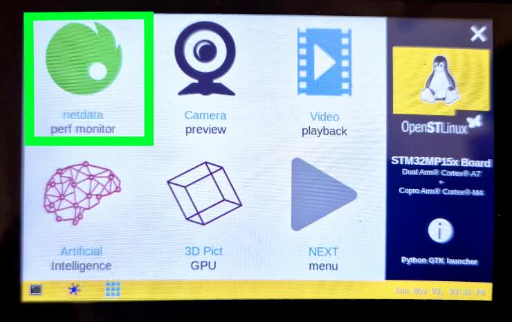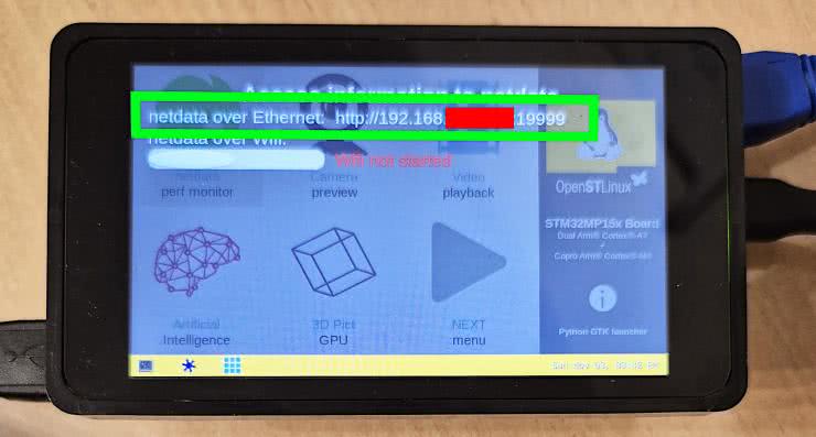 Aby uzyskać adres IP naszej płytki na ekranie głównym wyświetlanym przez płytkę, wybieramy zieloną ikonkę „netdata” (rysunek 3).