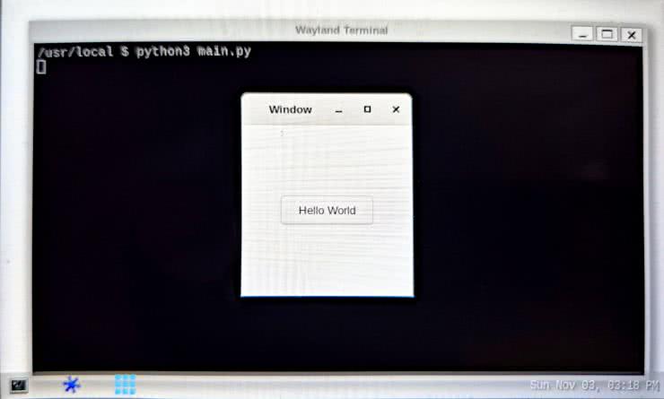 Efektem jego działania będzie wyświetlenie na ekranie naszej płytki okienka aplikacji z przyciskiem „Hello World” (rysunek 1).