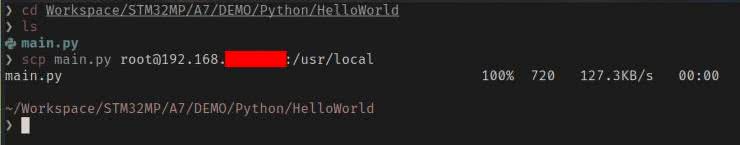przesyłamy plik do pamięci zestawu uruchomieniowego. Rysunek 2 pokazuje działanie komendy scp w terminalu. Użytkownicy systemów Linux korzystający z tmux nie muszą otwierać dodatkowego okna terminalu, wystarczy dodać nową sesję (rysunek 5).