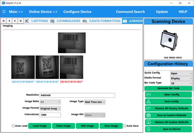 - Continuous Mode (tryb ciągły) – silnik skanujący automatycznie przemiata obraz z kamery w poszukiwaniu kodów i dekoduje je przez cały czas, niezależnie od tego, czy zawartość kodu zmieniła się, czy nie – powoduje to, że w czasie dłuższej prezentacji niezmiennego kodu (np. wydrukowanego lub statycznie wyświetlonego na ekranie smartfona) skaner będzie wielokrotnie wysyłał do urządzenia nadrzędnego ten sam ciąg znaków.