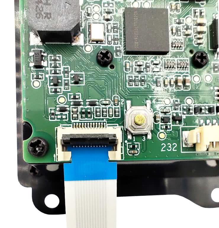Skaner EM20-80 V2 jest wyposażony w trzy złącza udostępniające zarówno linie zasilania, jak i interfejsy szeregowe oraz dodatkowe sygnały sterujące. Największe możliwości daje 12-pinowe gniazdo ZIF, współpracujące z taśmami FPC ze specjalnymi wycięciami blokującymi po obydwu stronach usztywniacza – podłączając przewód do tego gniazda, należy zatem zwrócić uwagę, czy wycięcia znalazły się za zaczepami, wykonanymi po obu stronach slotu w gnieździe (fotografia 8).
