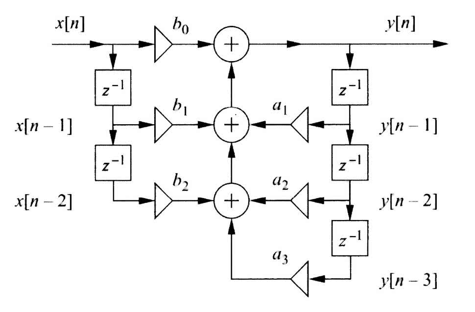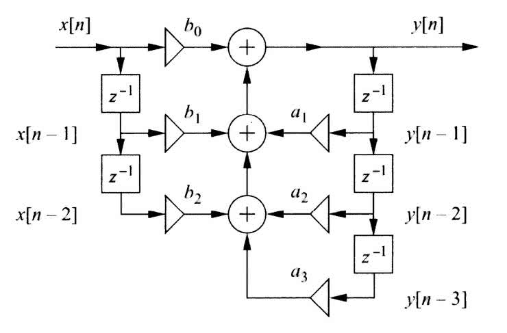 y[n]=b0x[n–0]+b1x[n–1]+...+bMx[n–M]+a1y[n–1]+...+aNy[n–N] (1)
