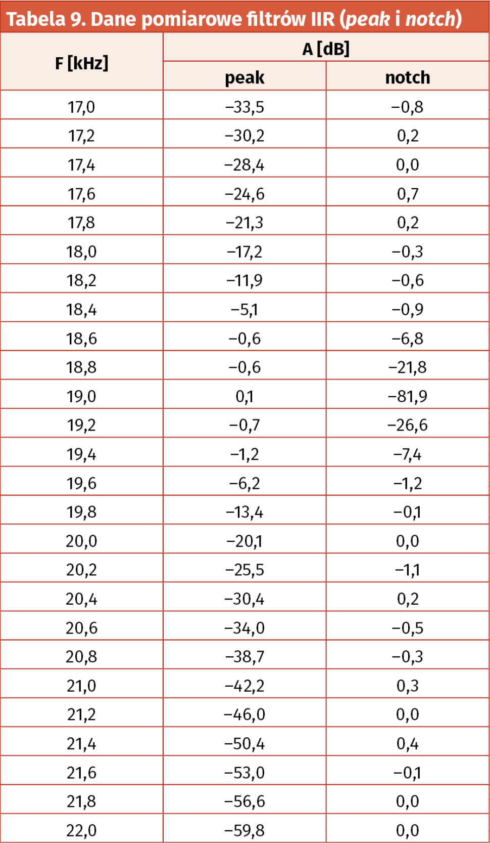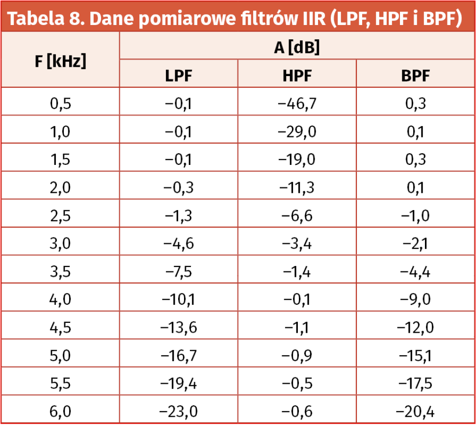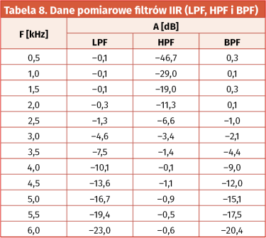 W tym przypadku, przy względnie niewielkich błędach pomiarowych, uzyskano całkiem satysfakcjonującą zgodność rezultatów pomiaru charakterystyk filtrów cyfrowych IIR z wynikami teoretycznych symulacji komputerowych ich prototypów. Dalszą, dokładną analizę porównawczą zaprezentowanych danych polecam uwadze wnikliwych Czytelników.