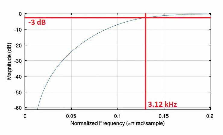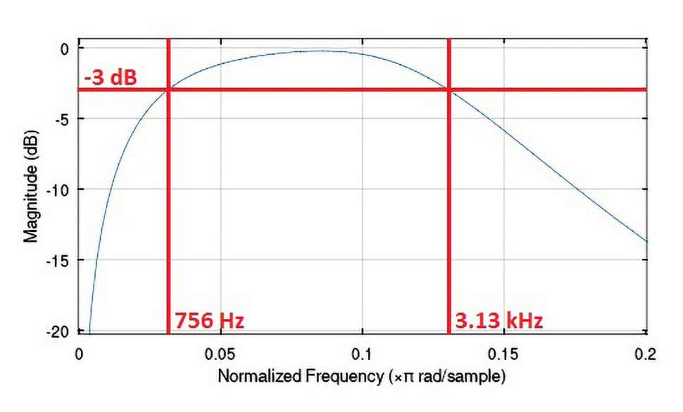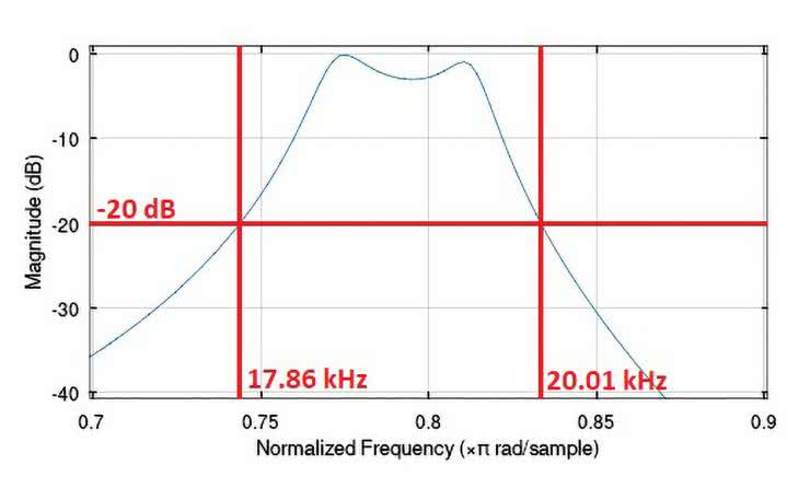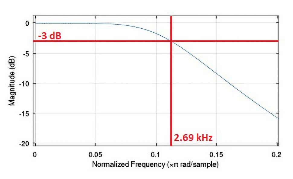 Jak wynika z listingu 1, jako częstotliwość próbkowania ponownie przyjęto Fs=48 kHz, natomiast jako rząd filtru w przypadku wszystkich projektów zadano Nord=3. Współczynnik skalujący scale został użyty w celu dostosowania wartości uzyskanych współczynników b[n] oraz a[n] do arytmetyki całkowitoliczbowej, którą także w tej części kursu użyto w implementacji fizycznej. Warto w tym miejscu podkreślić, że w trakcie eksperymentów z projektowaniem filtrów różne wartości parametru Nord były optymalne dla różnych typów generowanych filtrów, jednak z punktu widzenia tego kursu nie jest to kluczowe zagadnienie.
