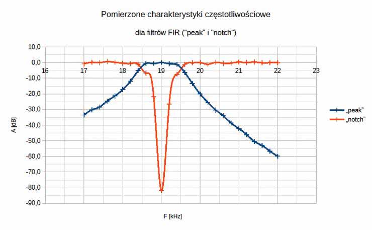Z ostatnim z wymienionych zagadnień spróbujemy zmierzyć się po prostu poprzez zastosowanie logarytmicznej sondy pomiarowej o znacznej dynamice. Natomiast większym wyzwaniem są zapewne niesatysfakcjonujące charakterystyki częstotliwościowe prostych filtrów FIR. Jednym z proponowanych wstępnie rozwiązań było znaczne wydłużenie projektowanych struktur FIR na drodze redukcji nakładu obliczeniowego per jednostkowy element filtru. Jakkolwiek po wnikliwym przeanalizowaniu kodu programu realizującego filtry okazało się, że potencjał tego rozwiązania to wydłużenie badanych filtrów o nie więcej niż 15...20%. Wg najlepszej wiedzy i doświadczenia inżynierskiego autora tej publikacji zapewne nie dałoby to radykalnej, w pełni satysfakcjonującej poprawy uzyskiwanych rezultatów filtracji.