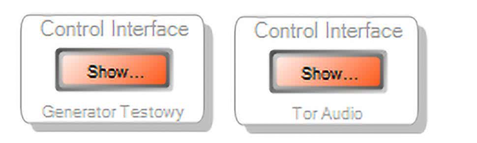 Po zapisaniu, kompilacji i załadowaniu projektu mamy możliwość obsługi aplikacji zarówno z poziomu elementów schematu, jak i z okna interfejsu użytkownika. Okienko interfejsu może zostać zamknięte przyciskiem na belce tytułowej, ponowne jego wywołanie następuje po naciśnięciu klawisza Show bloku Control UI. Konfiguracja okienka UI może zostać zapisana w pliku *.xml – wraz z parametrami – po wyborze opcji Save/SaveAs z menu okna interfejsu.