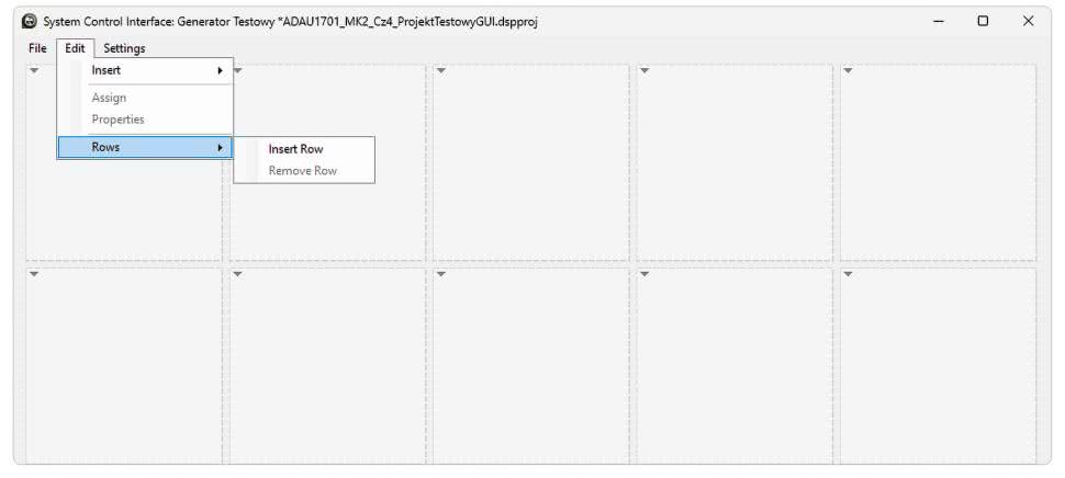 Po wybraniu pola Show otrzymujemy dostęp do ekranu konfiguracyjnego manipulatorów. Domyślnie możemy umieścić w nim do 2×5 manipulatorów, ale jeżeli ta liczba nie jest wystarczająca, to za pomocą menu Edit\Rows\Insert Row dodajemy dodatkowy rząd.