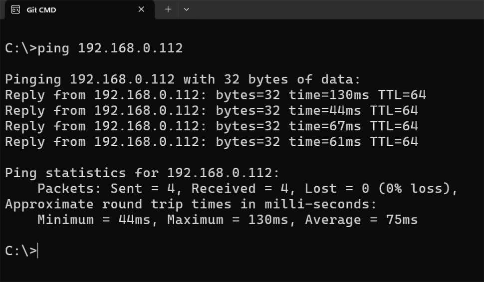 Możemy przesłać testowy pakiet danych z komputera do ESP32, aby sprawdzić komunikację. W tym celu musimy uruchomić konsolę systemową, wchodząc (w przypadku systemu Windows) do menu Start i wpisując „cmd”. Następnie, kiedy otworzy się konsola, wpisujemy polecenie ping wraz z adresem IP, jaki zobaczyliśmy na konsoli MicroPythona. Komputer prześle cztery testowe pakiety do ESP32 i jeżeli nie będzie żadnych błędów, to powinniśmy zobaczyć efekt analogiczny do tego z rysunku 4. Adres IP w Twoim przypadku oczywiście może być inny.
